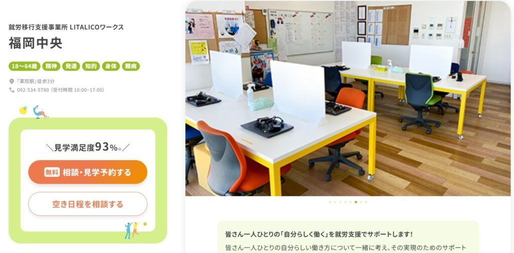 福岡市内にある就労移行支援施設を73施設、集めましたので、それぞれの特徴を比較してみてください。
