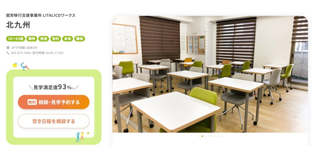 リタリコワークスは、北九州市内では戸畑と小倉にある就労移行支援です。